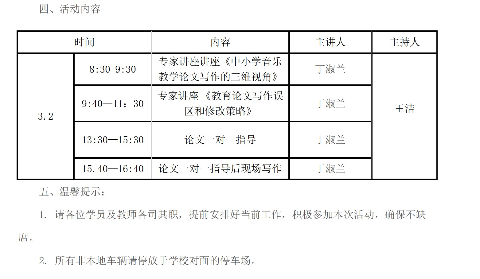 1. 请各位学员及教师各司其职,提前安排好当前工作,积极参加本次活动,确保不缺席。