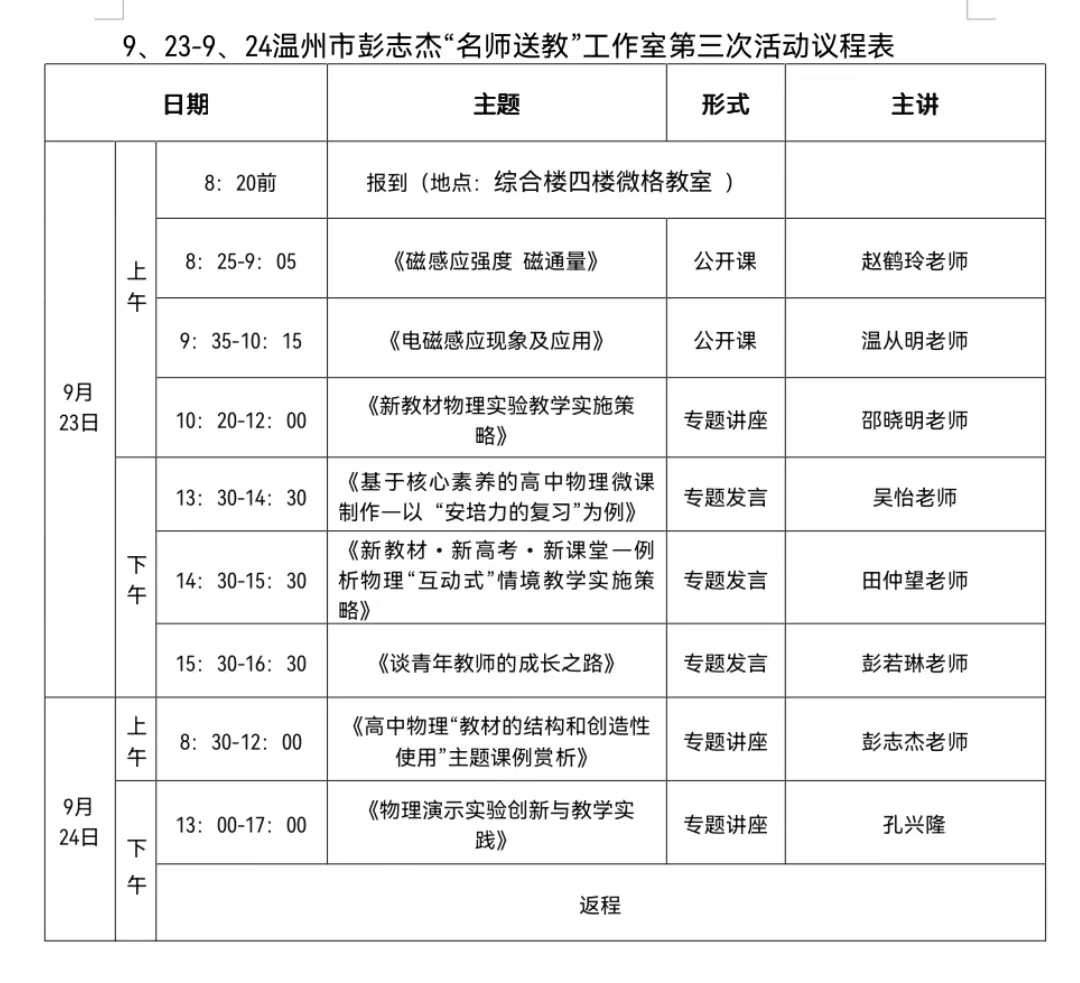 关于举行温州市彭志杰“名师送教”工作室第3次活动的通知