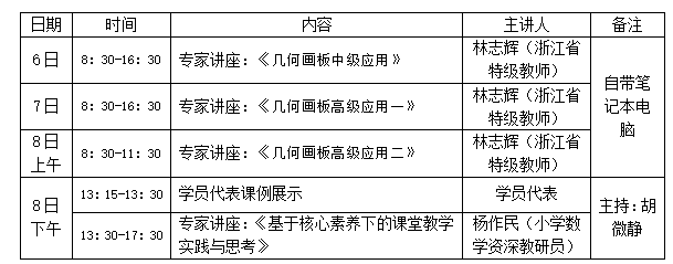 为提升教师专业素养,追寻“有学生、有数学、有技术”的数学课堂。现决定举行林志辉名师工作室“小学数学几何画板能力提升”专题培训活动。具体安排如下: