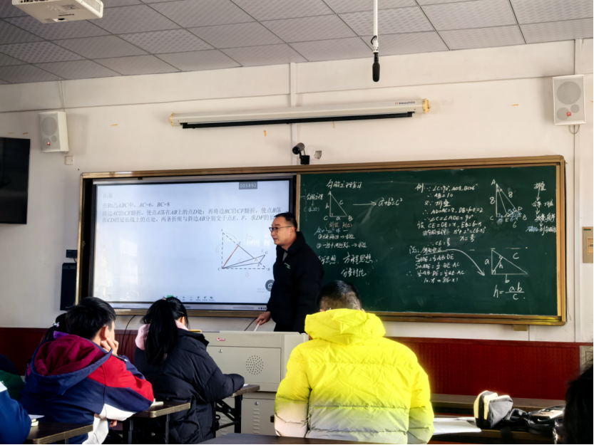 20241219日上午第二节课,王博毅老师在永嘉县鲤溪中学开除了一堂数学公开课,板书精美让人赏心悦目,语言精练,教学设计紧凑,让人“深陷其中”。王老师,教态自然,围绕直角三角形中的勾股定理,从开放性问题展开,收放自如,在复习知识点中渗透方程思想及分类讨论思想。例题难度适中,有趣味性,与知识点强联系,既有方法又有思想,可谓是极具艺术感的一节课。