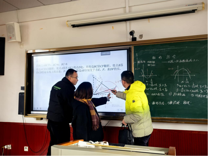 上午第三节课周玲双老师开出了一节数形结合,比较二次函数值的大小的公开课。周老师备课精细,捕捉学生学习中的痛点,在学生学情基础上,搭建学习框架,围绕二次函数值的大小比较归纳总结拔高,学生的难点在周老师的娓娓道来的语言化解,知识和能力在潜移默化中提升,可见周老师的课堂充满艺术。