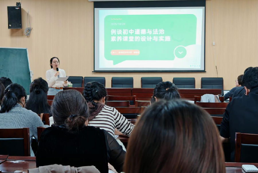 平阳县发展中心教研员彭玉洁老师作《扎根乡土情境 聚焦农村学情》主题发言,深入剖析了农村学校的教学实际,强调道德与法治教学创设乡土情境:从“通用叙事”到“农村生活”,让情境有“烟火气”;二要立足农村学情:从“泛化把握”到“痛点精准”,让教学有“针对性”;三要借助教学活动:从“标准化设计”到“在地化创新”,让活动有“可操作性”。教学要接地气、有温度,为农村学校素养课堂的构建提供了实践指南。